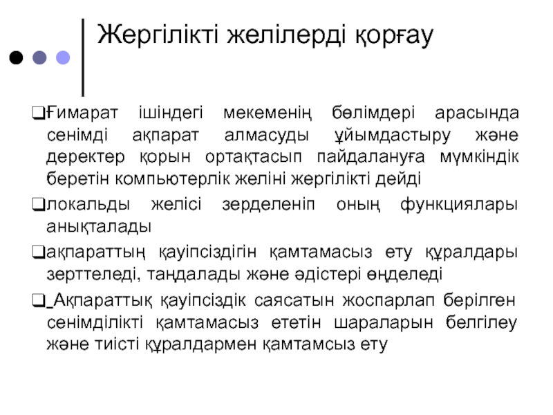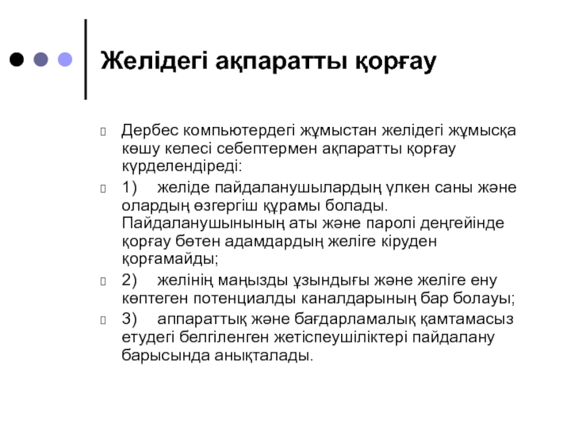 болады. Пайдаланушынының аты және паролі деңгейінде қорғау бөтен адамдардың желіге кіруден қорғамайды;