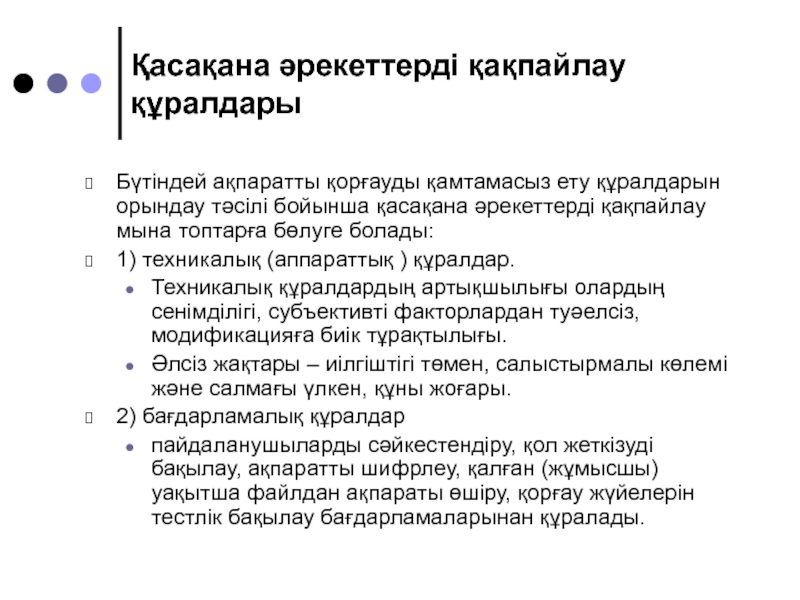 Слайд 5Қасақана әрекеттерді қақпайлау құралдары