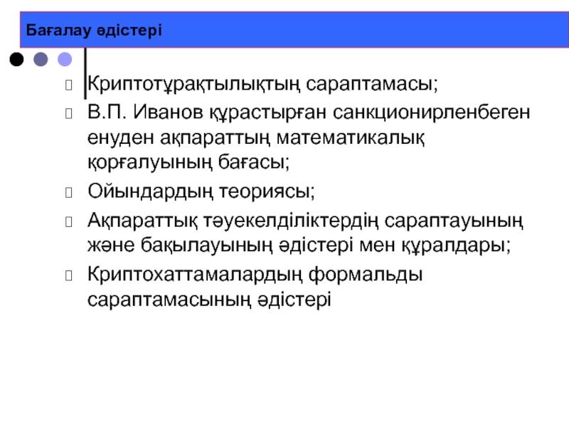 В.П. Иванов құрастырған санкционирленбеген енуден ақпараттың математикалық қорғалуының