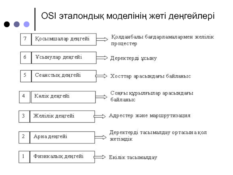 Слайд 10OSI эталондық моделінің жеті деңгейлері