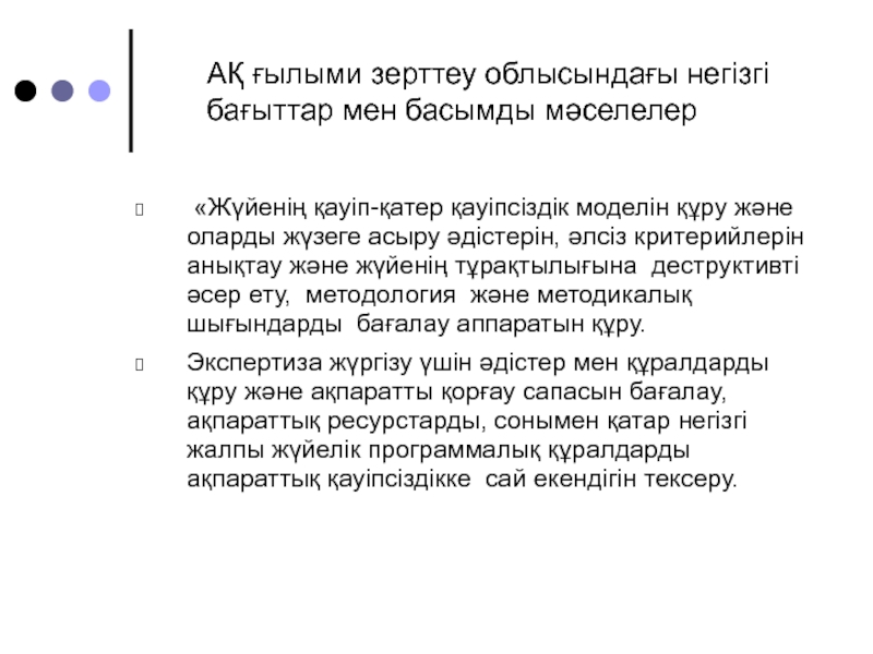 Слайд 20АҚ ғылыми зерттеу облысындағы негізгі бағыттар мен басымды мәселелер