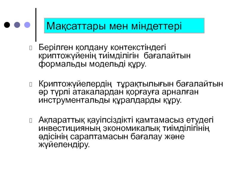ақпараттың қауіпсіздігін қамтамасыз ету құралдары зерттеледі, таңдалады және әдістері өңделеді