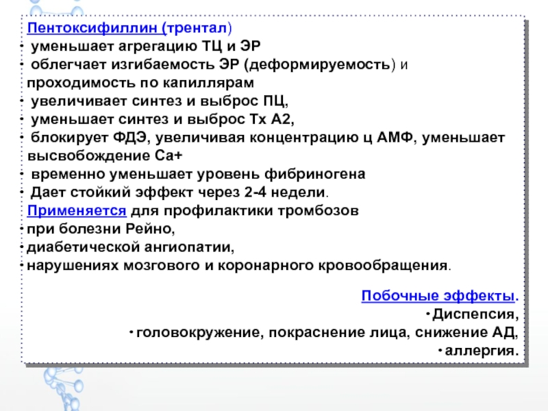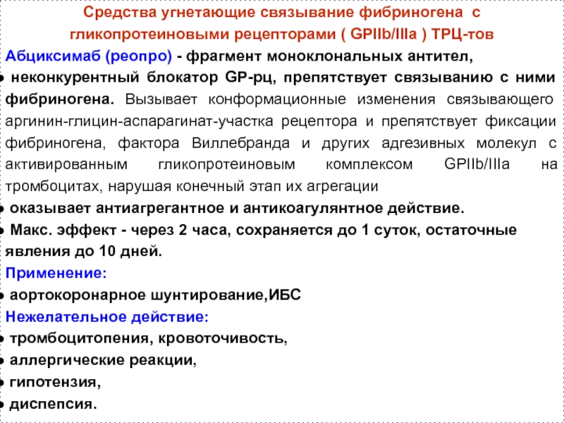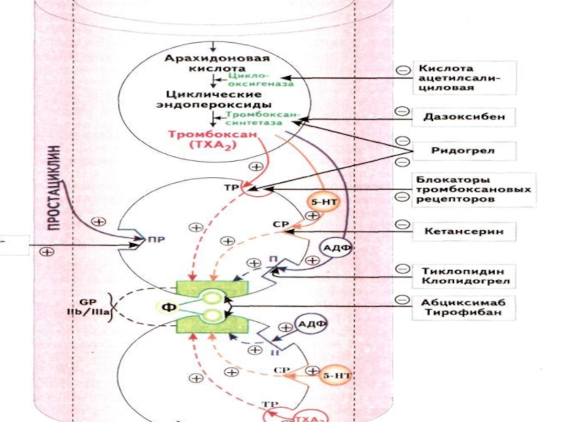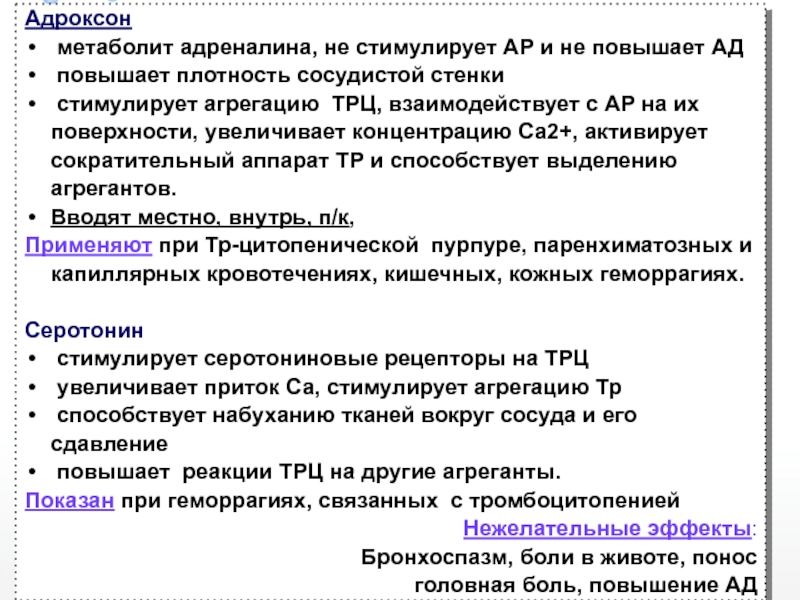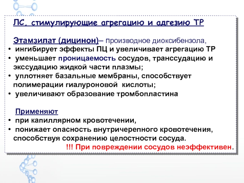 Слайд 75ЛС, стимулирующие агрегацию и адгезию ТР