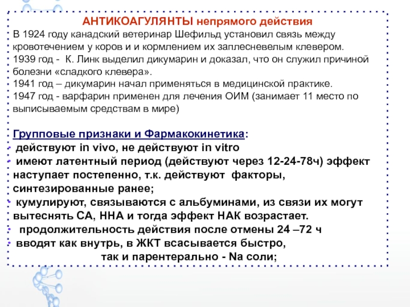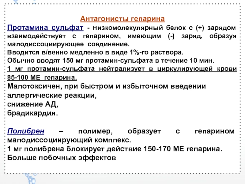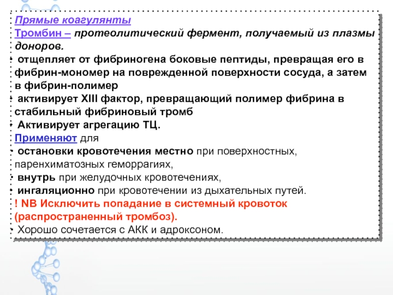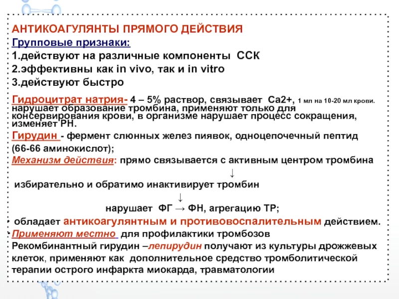 Слайд 10АНТИКОАГУЛЯНТЫ ПРЯМОГО ДЕЙСТВИЯ