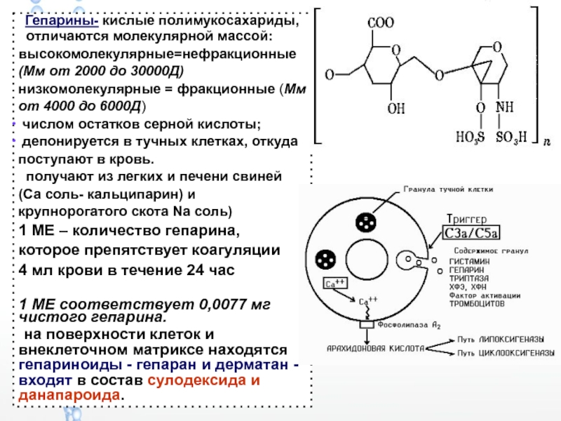 получают из легких и печени свиней (Са соль- кальципарин) и крупнорогатого скота Na соль)