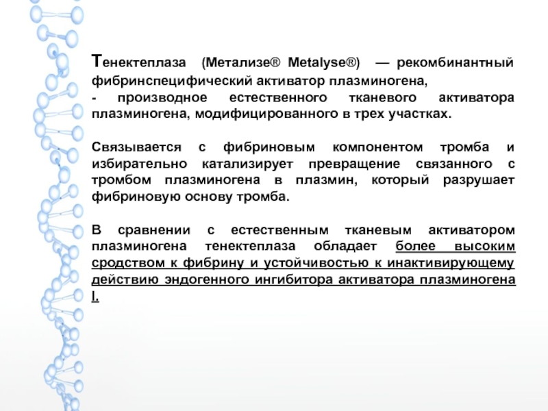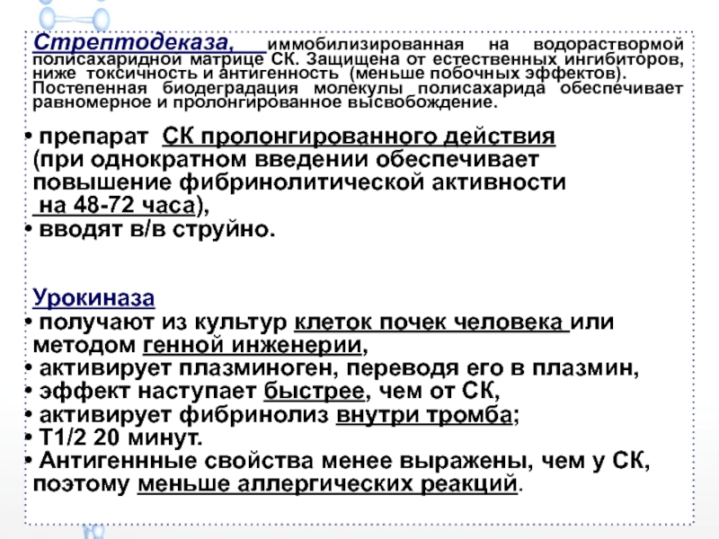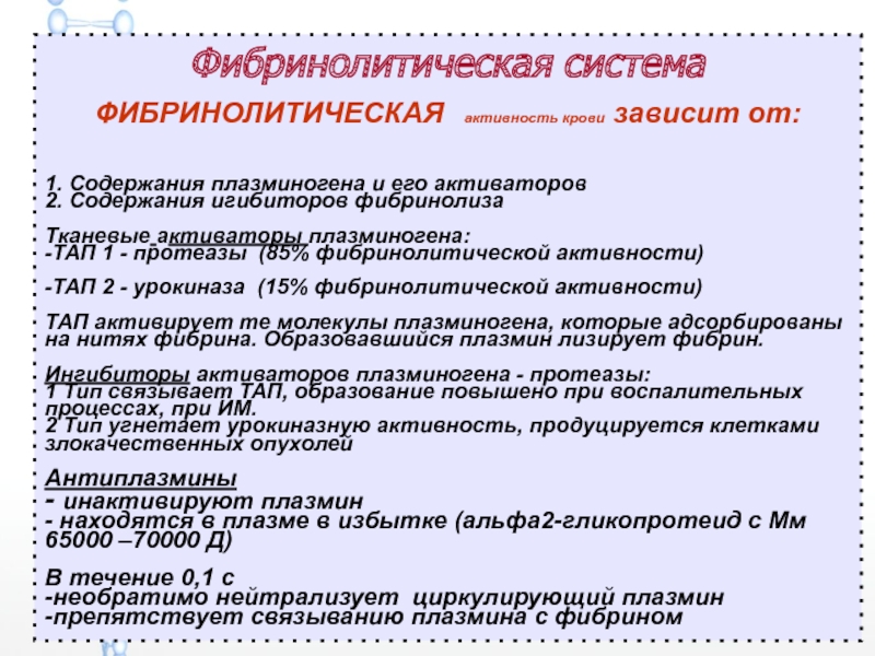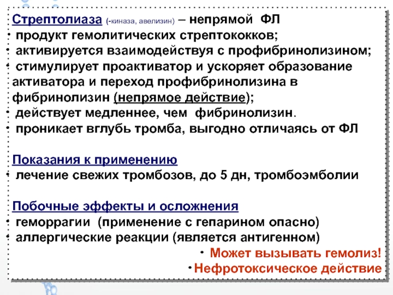 5. активирует фибринолитическую систему крови, образовывая комплекс с антиплазмином (в высоких дозах).