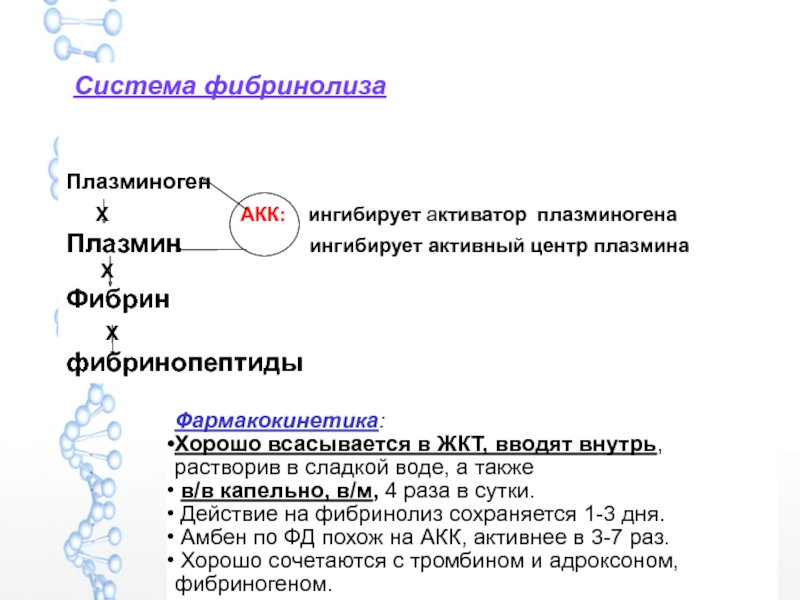 профибринолизина и нарушает его превращение в фибринолизин, препятствуя деградации фибрина.