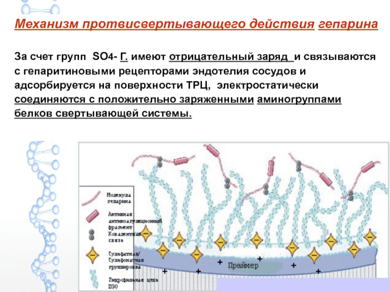 заряд и связываются с гепаритиновыми рецепторами эндотелия сосудов и адсорбируется