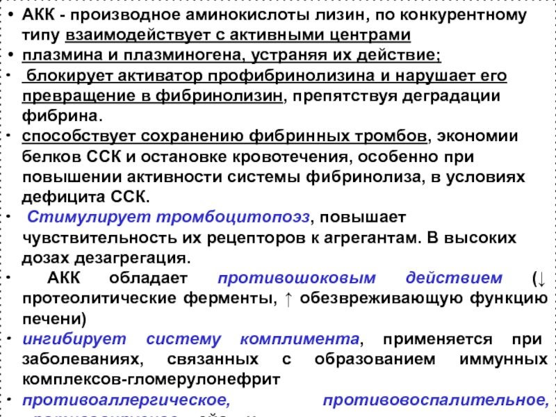 Слайд 68АКК - производное аминокислоты лизин, по конкурентному типу взаимодействует с