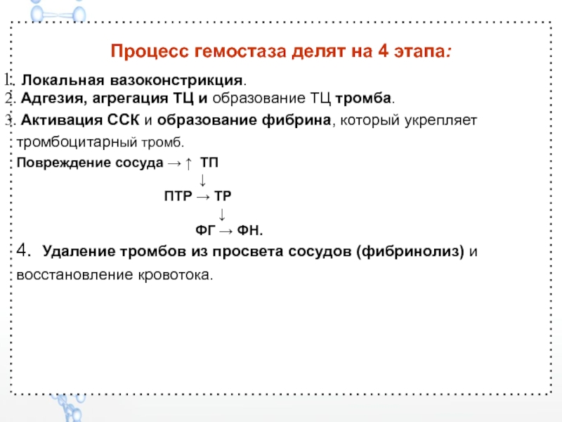 Активация ССК и образование фибрина, который укрепляет тромбоцитарный тромб.