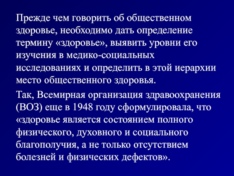 Слайд 4Прежде чем говорить об общественном здоровье, необходимо дать определение термину