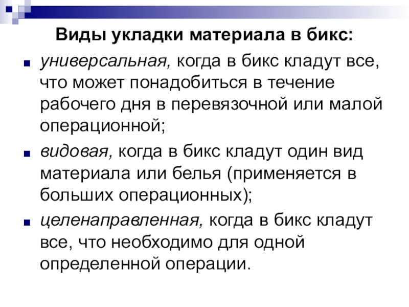 целенаправленная, когда в бикс кладут все, что необходимо для одной определенной операции.
