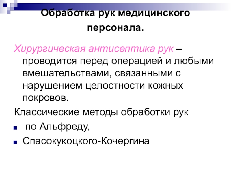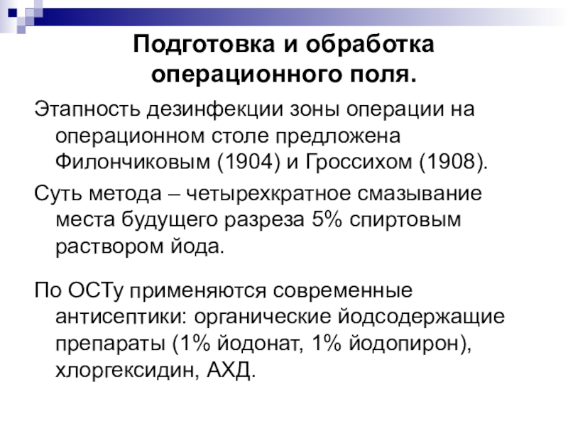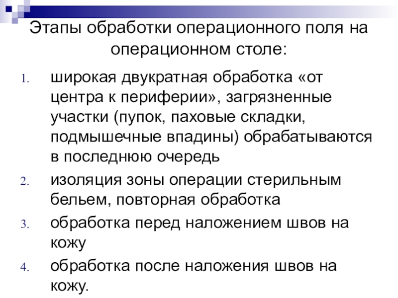 Слайд 24Этапы обработки операционного поля на операционном столе: