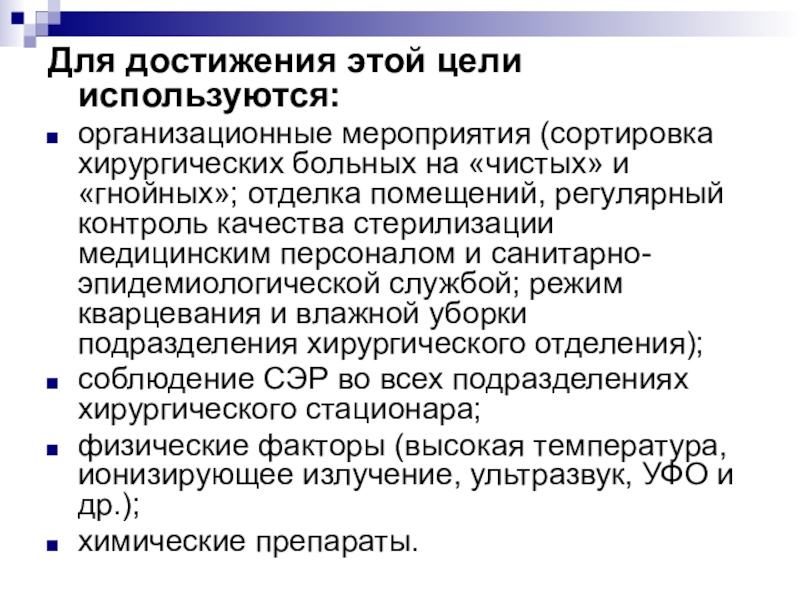 «чистых» и «гнойных»; отделка помещений, регулярный контроль качества стерилизации медицинским