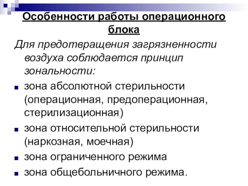 Для предотвращения загрязненности воздуха соблюдается принцип зональности: