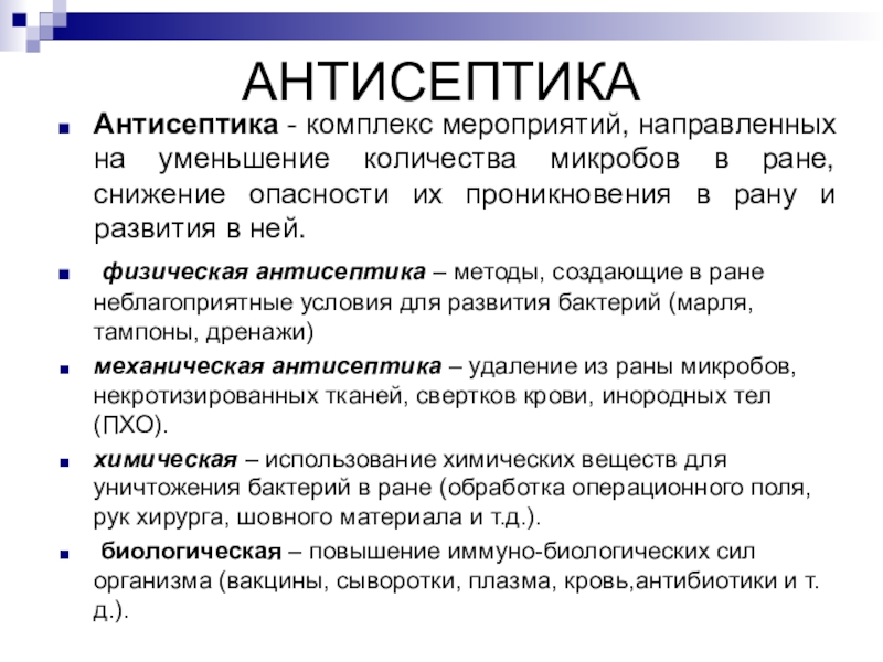Антисептика - комплекс мероприятий, направленных на уменьшение количества микробов в
