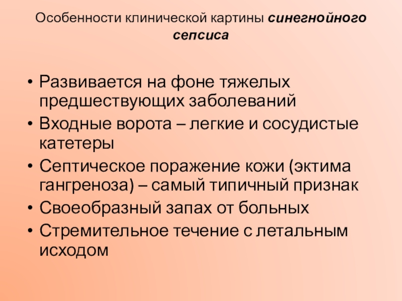 Слайд 53Особенности клинической картины синегнойного сепсиса