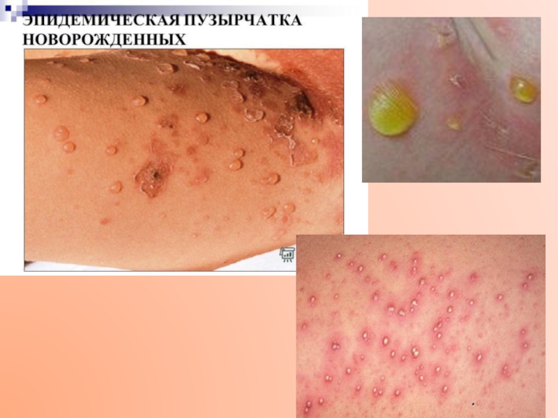 Тело новорождённого имеет вид обожжённого кипятком, вялые пузыри, трещины, обширные эрозии. Нередко развивается сепсис.