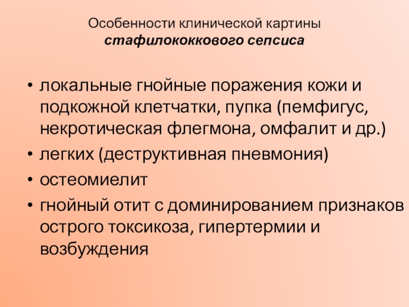Слайд 51Особенности клинической картины стафилококкового сепсиса
