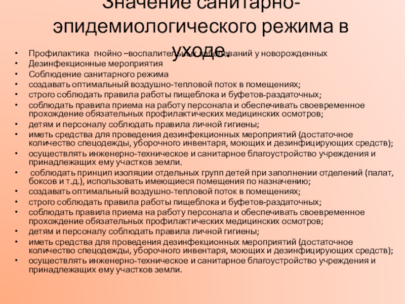Слайд 58Значение санитарно-эпидемиологического режима в уходе.