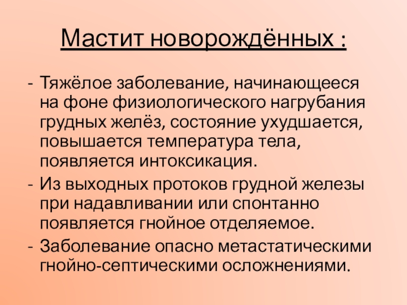 Тяжёлое заболевание, начинающееся на фоне физиологического нагрубания грудных