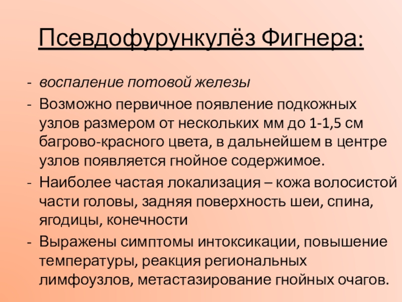 Наиболее частая локализация – кожа волосистой части головы, задняя поверхность шеи, спина, ягодицы, конечности