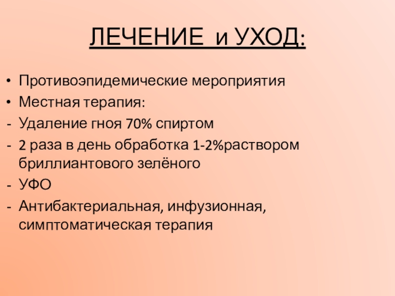 Слайд 23ЛЕЧЕНИЕ и УХОД: