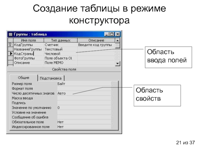 спроектирована и создана перед вводом в таблицу каких-либо данных.