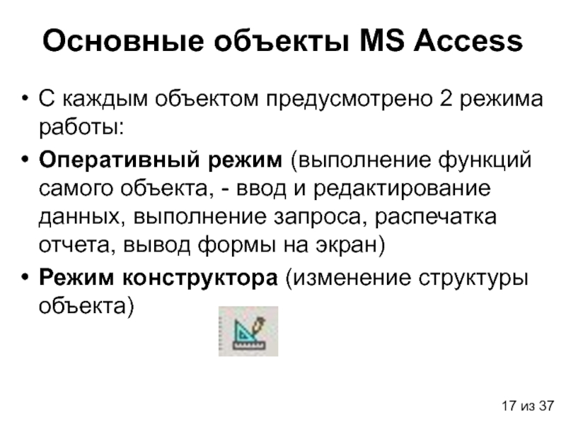 Access – предназначена для хранения данных. Все остальные объекты являются