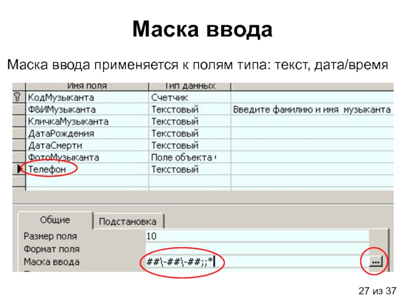 их тип (например, количество цифр или символов), а также указать, как эти данные связаны между собой.