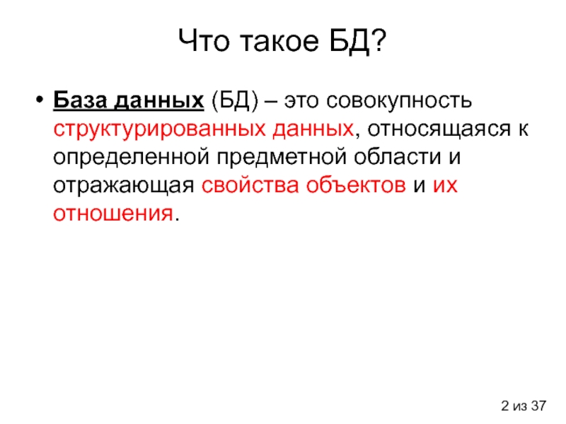 структурированных данных, относящаяся к определенной предметной области и отражающая свойства