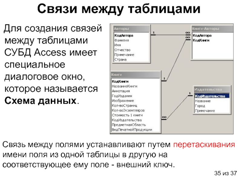 таблицами СУБД Access имеет специальное диалоговое окно, которое называется Схема