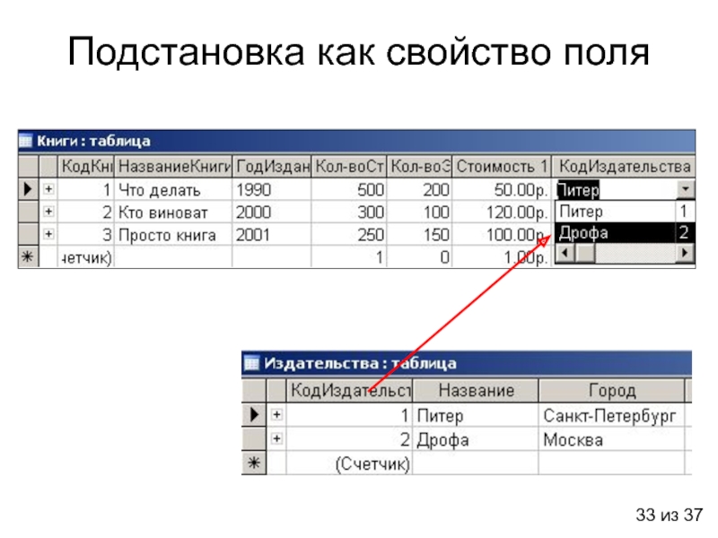 Связь между полями устанавливают путем перетаскивания имени поля из одной таблицы в другую на соответствующее ему поле - внешний ключ.