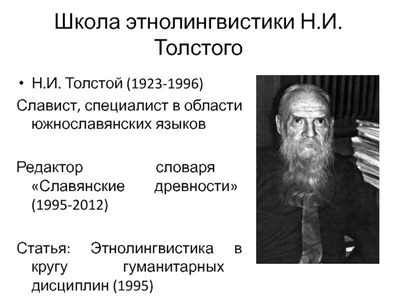 Слайд 11Школа этнолингвистики Н.И. Толстого