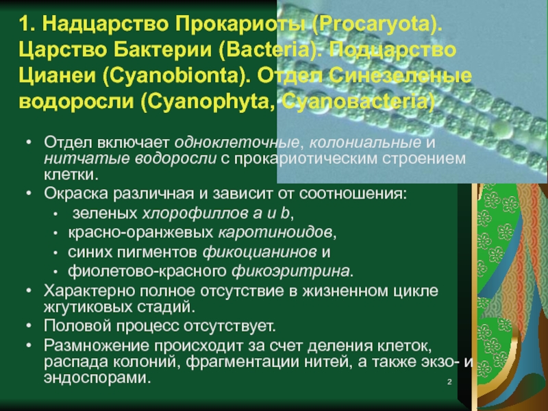 Слайд 21. Надцарство Прокариоты (Procaryota). Царство Бактерии (Bacteria). Подцарство Цианеи (Cyanobionta).