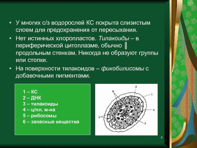 Слайд 5У многих с/з водорослей КС покрыта слизистым слоем для предохранения