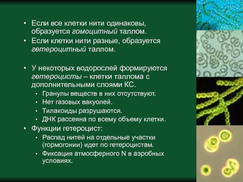 Слайд 7Если все клетки нити одинаковы, образуется гомоцитный таллом.