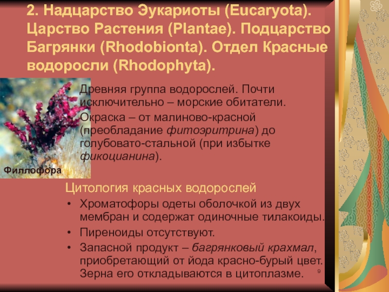 Слайд 92. Надцарство Эукариоты (Eucaryota). Царство Растения (Plantae). Подцарство Багрянки (Rhodobionta).