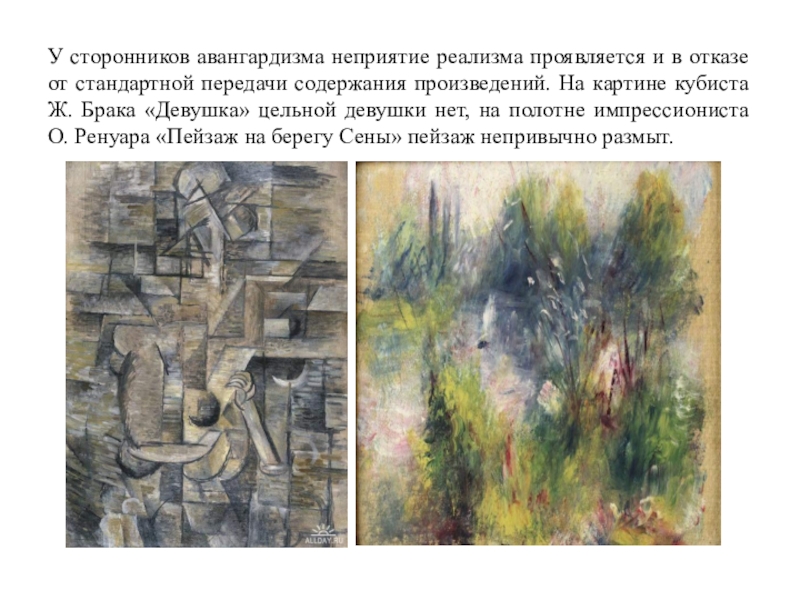 Слайд 30У сторонников авангардизма неприятие реализма проявляется и в отказе от