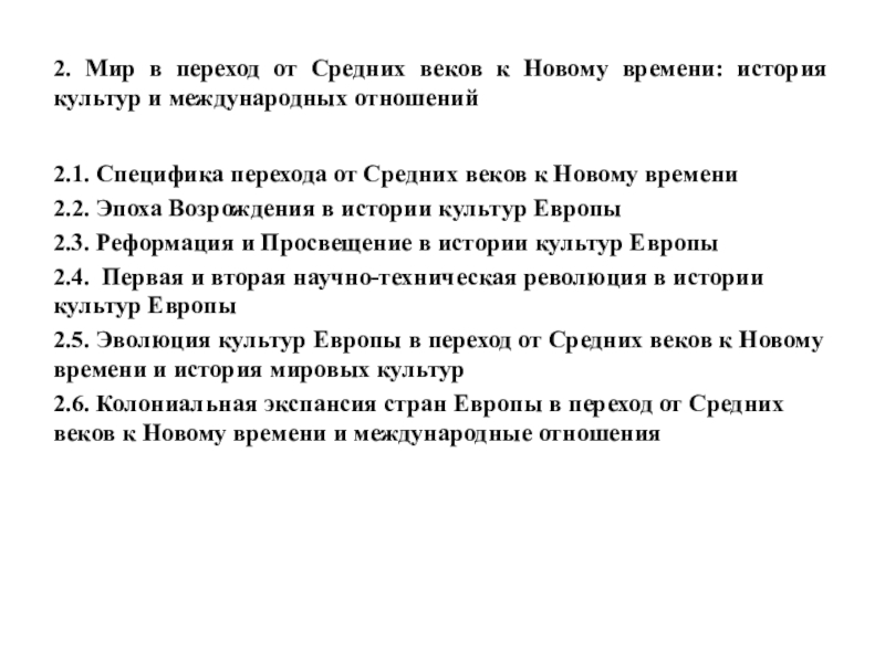 2.5. Эволюция культур Европы в переход от Средних веков к Новому времени и история мировых культур