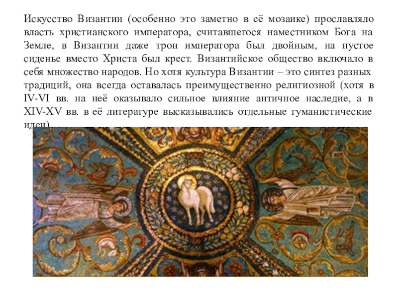 Слайд 5Искусство Византии (особенно это заметно в её мозаике) прославляло власть