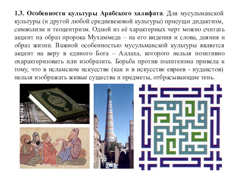 Слайд 61.3. Особенности культуры Арабского халифата. Для мусульманской культуры (и другой