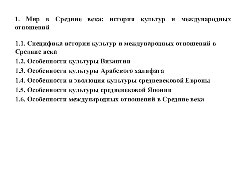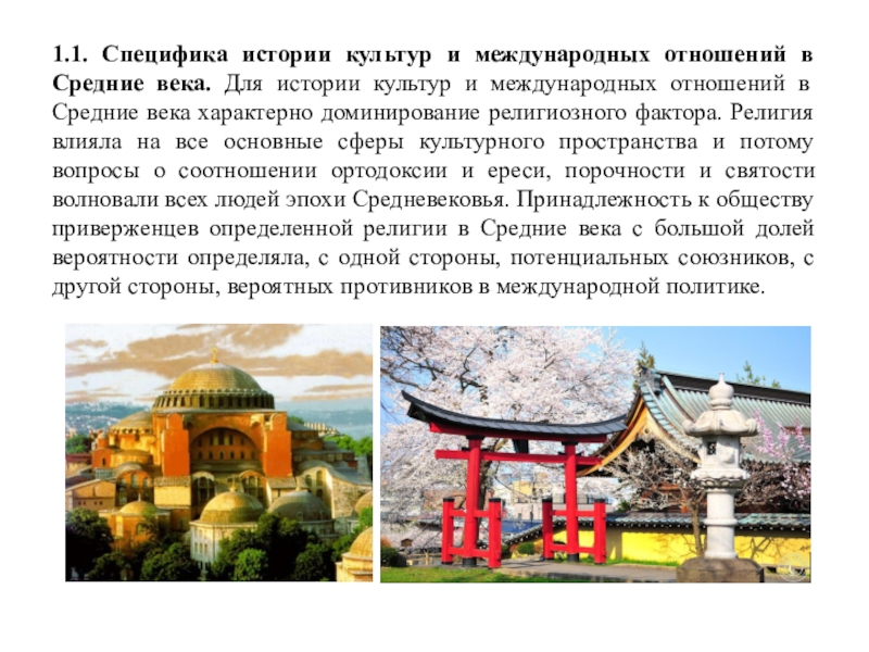 Слайд 31.1. Специфика истории культур и международных отношений в Средние века.