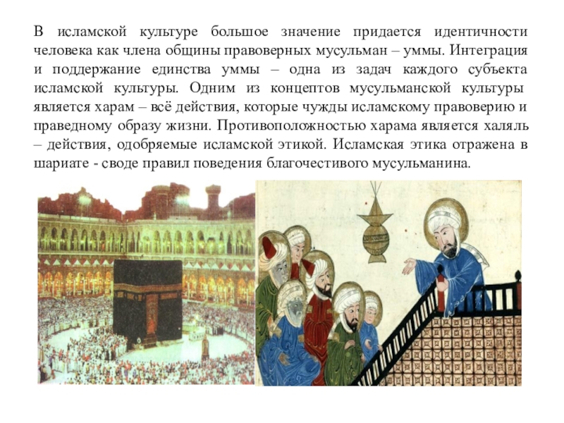Слайд 7В исламской культуре большое значение придается идентичности человека как члена