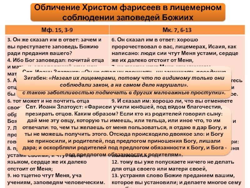Зигабен: «Назвал их лицемерами, потому что по видимому только они соблюдали закон, а на самом деле нарушали».