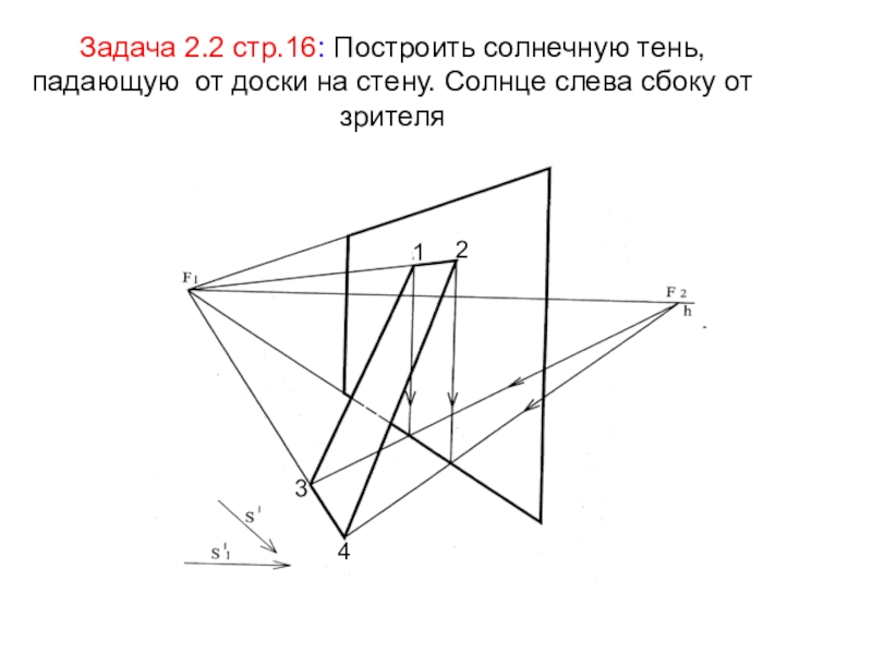 Слайд 15От горизонтальной прямой 1-2, параллельной полу, тень падает параллельно, т.е.