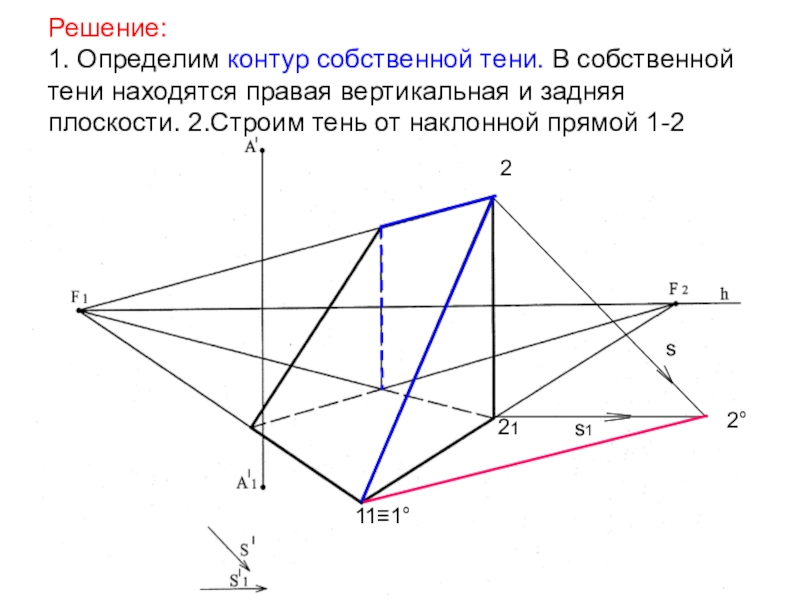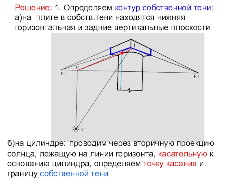 Слайд 60Решение: 1. Определяем контур собственной тени: