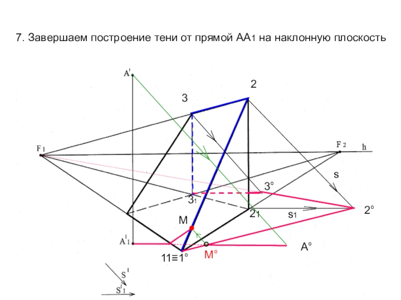 Слайд 587. Завершаем построение тени от прямой АА1 на наклонную плоскость