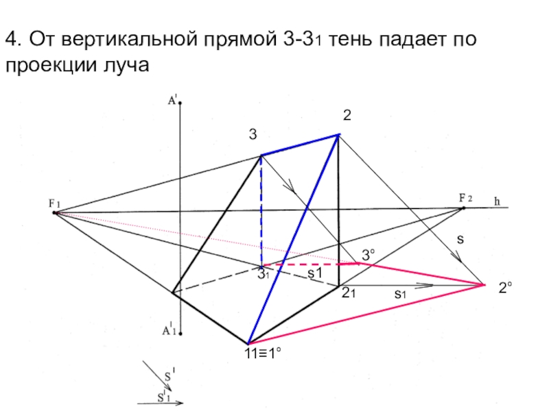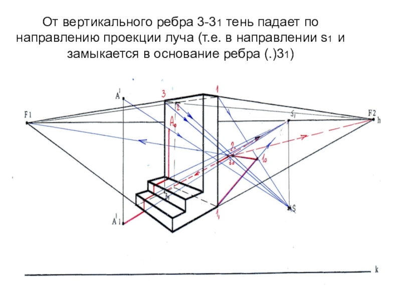Слайд 17От вертикального ребра 3-31 тень падает по направлению проекции луча