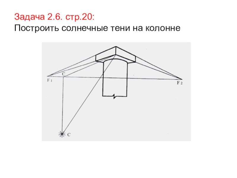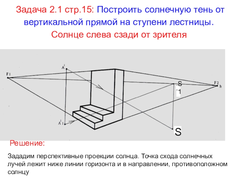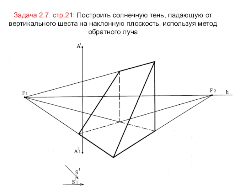 Слайд 12Задача 2.1 стр.15: Построить солнечную тень от вертикальной прямой на